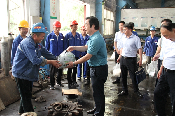 懷著對高溫下堅(jiān)守崗位一線的干部職工的牽掛與關(guān)愛,8月3日,公司黨委書記、執(zhí)行董事劉水利帶領(lǐng)公司相關(guān)部門負(fù)責(zé)人,深入黨建聯(lián)系點(diǎn)玉華礦,看望慰問戰(zhàn)高溫、保安全、促生產(chǎn)的干部職工,為他們送去白糖、茶葉、綠豆等降溫品,將組織的關(guān)懷、領(lǐng)導(dǎo)的關(guān)愛、親情的囑咐和對安全生產(chǎn)的關(guān)注送到了職工群眾的心坎上。
