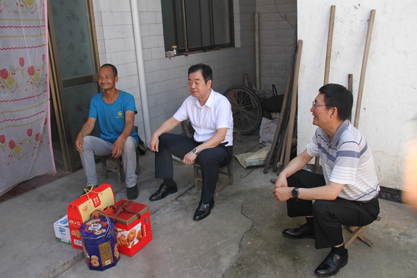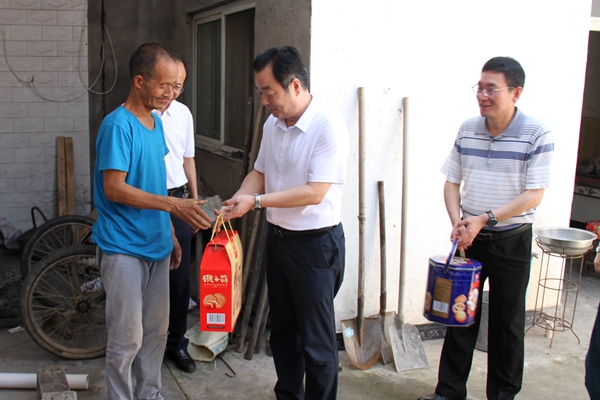 隨后,劉水利深入東王村村民馮友成家,關切地詢問了馮友成的生活和家庭狀況,并向他送去慰問品。當了解到馮友成雖身有殘疾,但2015年已納入五保戶進行兜底幫扶,每年村里扶貧項目給他有分紅,有醫(yī)保,他還有三畝多耕地種莊稼有收成,看護村莊林地有補貼,在村上幫扶和個人努力下收入有保障,吃穿不發(fā)愁,他的生活還有親屬和村上幫助照顧,已實現(xiàn)脫貧時,劉水利說 ,有黨的好政策,有村上的幫助和企業(yè)的幫扶,有個人的辛勤勞動,困難一定會克服,日子也會越來越好。他同時對隨行的公司派駐東王村駐村第一書記趙龍喜說,對馮友成這樣的家庭更要多關注、多幫扶,要讓他們感受的組織的溫暖和親情的關愛,讓他們享受到黨的好政策,享受到農(nóng)村改革發(fā)展和村辦企業(yè)帶來的實惠,堅定克服困難的信心和決心,切實從思想和精神上脫貧,并勉勵馮友成保重身體,以樂觀心態(tài)面對困難,靠自立自強,辛勤勞動,進一步改變生活面貌。