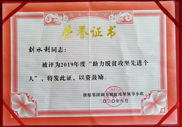 在受表彰的先進(jìn)集體和個(gè)人中,公司獲得2項(xiàng)集體榮譽(yù)、1項(xiàng)個(gè)人榮譽(yù)。其中,公司被陜煤集團(tuán)授予2019年度“助力脫貧攻堅(jiān)優(yōu)秀單位”,公司人力資源部被授予“助力脫貧攻堅(jiān)就業(yè)扶貧先進(jìn)集體”,公司黨委書記、執(zhí)行董事劉水利被授予“助力脫貧攻堅(jiān)先進(jìn)個(gè)人” 榮譽(yù),受到集團(tuán)公司的表彰。
