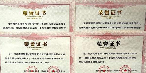 近日,由陜西省煤炭工業(yè)協(xié)會和陜煤集團主辦的陜西煤炭行業(yè)第十七次思想政治工作研討會在商洛鎮(zhèn)安召開,會上對80篇優(yōu)秀理論研討文章進行了表彰。公司選送的6篇論文分別獲得一、二、三等獎。