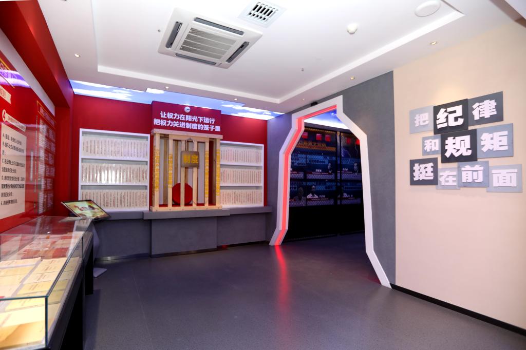 反腐倡廉教育館位于公司信息調(diào)度中心一樓,是公司反腐倡廉教育基地的核心部分,面積約400平方米,分設(shè)“序廳、諄諄教導(dǎo)、挺紀(jì)在前、警鐘長鳴、懺悔反思、時(shí)代楷模、銅煤清風(fēng)、尾廳”8個(gè)展區(qū),運(yùn)用圖文展示、情景模擬,照片、視頻、案例、聲像相結(jié)合的方式,借助聲光電等現(xiàn)代化布展手段,構(gòu)筑起多維展區(qū),使參觀者通過接受現(xiàn)場教育,達(dá)到筑牢拒腐防變思想防線,增強(qiáng)廉潔從業(yè)思想自覺和行動(dòng)自覺的目的。