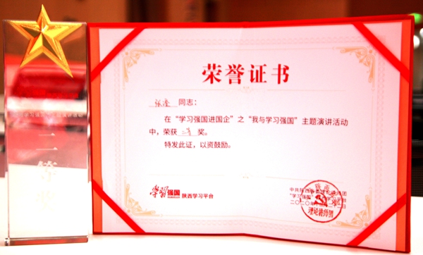 12月22日下午,由省委宣傳部、省委理論講師團(tuán)、省國資委、“學(xué)習(xí)強(qiáng)國”陜西平臺(tái)聯(lián)合主辦,陜西省地方電力(集團(tuán))有限公司承辦的“我與學(xué)習(xí)強(qiáng)國”主題演講活動(dòng)決賽在陜西地電公司舉辦,來自省屬國有企業(yè)的10組選手參加了比賽。公司物資供應(yīng)分公司職工張澄作為陜煤集團(tuán)參賽選手,以96.50分的成績榮獲競賽二等獎(jiǎng)。