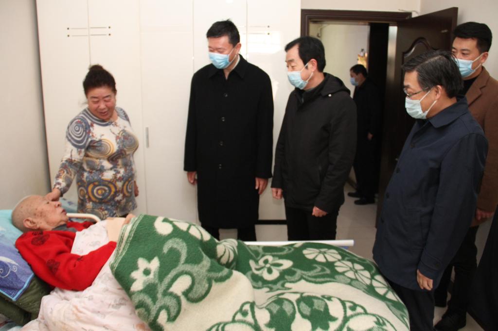 在困難黨員張長貴家,得知今年92歲的張長貴1949年7月參加工作,此前在公司供應處北關鐵廠工作,患有慢性病,腿腳不便,楊愛民對張長貴說,你們老一輩為企業(yè)發(fā)展奉獻了光和熱,是企業(yè)的功臣,對你們的付出黨組織和企業(yè)一直記在心上,你們?yōu)楦锩殛兾骱豌~川經(jīng)濟社會發(fā)展,為建設礦務局貢獻了力量,我們會傳承發(fā)揚好你們的精神把企業(yè)建設的更美好,切實把各項工作做好,并囑咐隨行的企業(yè)黨政工組織要對老同志的生活多關心,讓老同志安度晚年。他同時囑咐張長貴老人的家屬要照顧好老人的生活,有困難及時向組織反映,并希望張長貴保重好身體,調理好生活,快樂生活、安度晚年,并向張老送上溫馨祝福和慰問金,祝他和家人新春快樂,吉祥幸福!