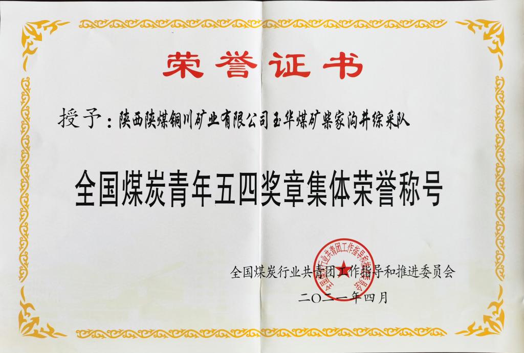 4月15日,由全國煤炭行業(yè)共青團工作指導和推進委員會舉辦的全國煤炭行業(yè)五四表彰大會暨“煤企百年跟黨走”主題團日活動在江西宜春舉行,大會表彰了2020年度全國煤炭行業(yè)優(yōu)秀共青團員、優(yōu)秀共青團干部和 “五四”紅旗團委(團支部)。公司柴家溝井綜采隊榮獲第9屆“全國煤炭青年五四獎章集體”榮譽稱號。