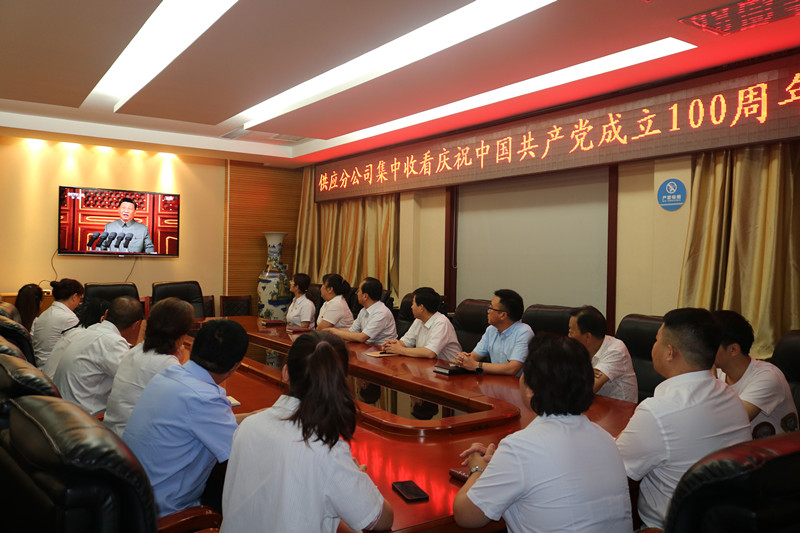 在供應(yīng)分公司,該公司黨委中心組成員和各支部成員早早守候在各學(xué)習(xí)室,收看“慶祝中國(guó)共產(chǎn)黨成立100周年大會(huì)”直播。