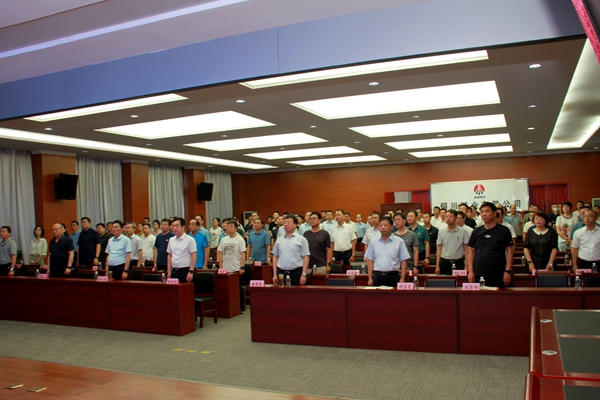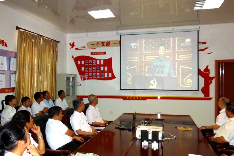 在公司機(jī)關(guān)五樓會(huì)議室,公司黨委書(shū)記、執(zhí)行董事劉水利,總經(jīng)理路根奎,黨委副書(shū)記、工會(huì)主席許江濤及公司各副總,機(jī)關(guān)各黨支部黨員干部早早來(lái)到會(huì)場(chǎng)集中收看了慶祝活動(dòng)盛況,共同見(jiàn)證這一激動(dòng)人心的歷史性時(shí)刻。當(dāng)升旗儀式開(kāi)始時(shí),與會(huì)所有人員起立,高唱《義勇軍進(jìn)行曲》,當(dāng)習(xí)近平總書(shū)記做重要講話(huà)時(shí),大家認(rèn)真仔細(xì)聆聽(tīng),反響強(qiáng)烈,并不時(shí)以掌聲激動(dòng)的表達(dá)了對(duì)黨的無(wú)比崇敬,對(duì)黨員身份的自豪和認(rèn)同。