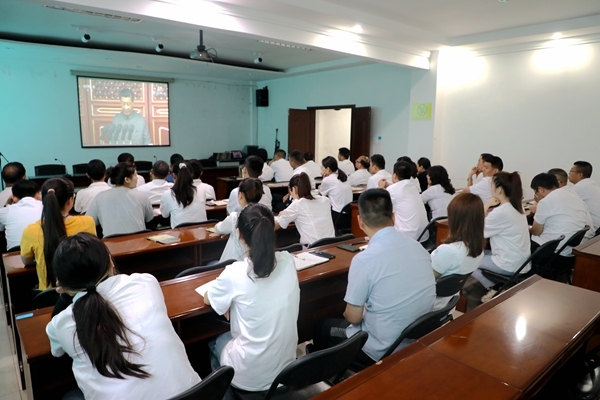 在鴨口公司,黨員干部在辦公樓二樓會(huì)議室集中收看了大會(huì)盛況,聆聽(tīng)了習(xí)近平總書(shū)記重要講話(huà)。