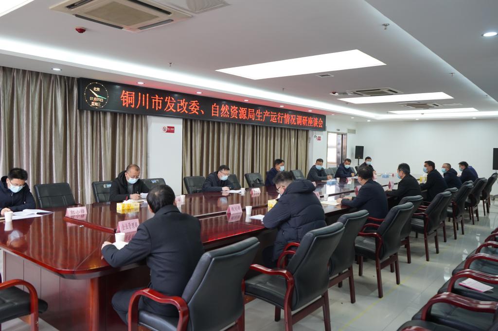 1月5日上午,銅川市發(fā)展改革委黨組書記、主任王曉剛,市自然資源局黨組書記、局長相永宏,在市自然資源局總工程師李東峰、王益區(qū)發(fā)展和改革局局長張江峰、印臺區(qū)發(fā)展和改革局局長肖宏偉及市發(fā)改委有關(guān)同志陪同下,深入公司調(diào)研生產(chǎn)運(yùn)行情況。公司黨委書記、董事長劉水利,總經(jīng)理助理劉彥明、梁銳及有關(guān)部門負(fù)責(zé)人參加調(diào)研座談會。