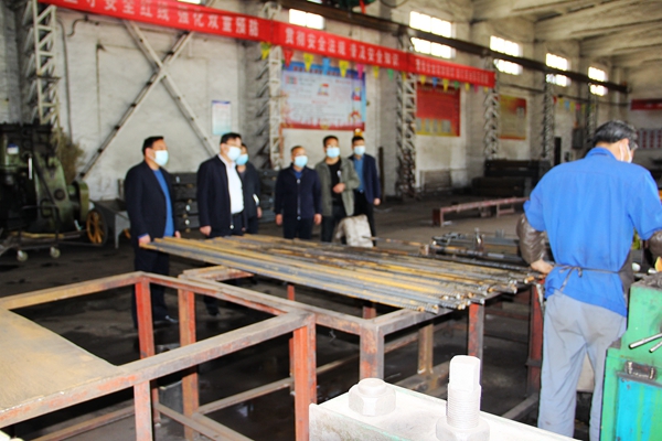 梁銳一行到達楓樺公司后,直奔錨桿生產(chǎn)車間和礦用支護產(chǎn)品庫房,詳細檢查了現(xiàn)場安全管理、人員操作、質量控制和支護材料儲備等工作,就疫情期間的安全生產(chǎn)、人員防護、原材料儲備等工作同該公司負責人進行了深入交流,提出指導意見。