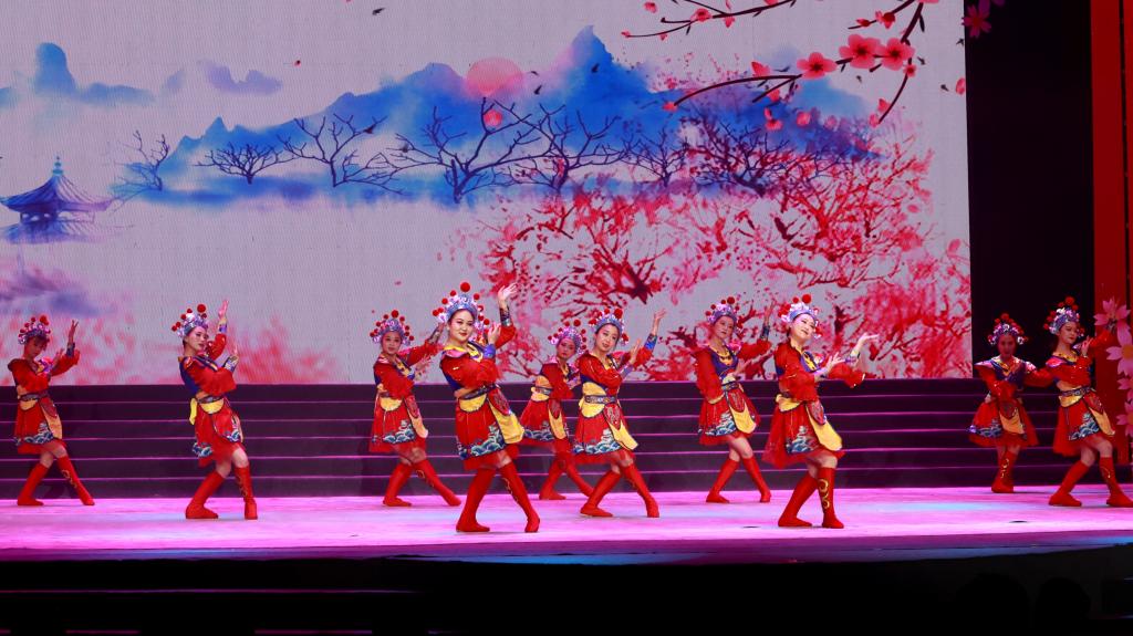 文藝曲目在活力迸發(fā)的開場舞《春潮》中拉開序幕。隨后,女聲獨唱《好兒好女好江山》讓永遠跟黨走、奮進新征程的時代強音響徹現(xiàn)場、激蕩人心。情景劇《追尋》,通過講述從銅煤走出去的大學生,追尋老一輩銅煤先賢的創(chuàng)業(yè)足跡和奮斗精神,回歸煤礦扎根礦山接續(xù)奮斗的青春故事,對銅煤紅色基因的代代相傳進行了生動的演繹。戲曲舞蹈《誰說女子不如男》展現(xiàn)了銅煤半邊天巾幗不讓須眉的奮斗豪情和創(chuàng)業(yè)干勁。