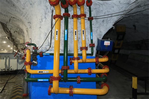 “一通三防”明晰。每100米標(biāo)注管路流向,每200米增設(shè)管路說明牌,重要閥門增設(shè)警示標(biāo)識,規(guī)范設(shè)置降塵噴霧、自動隔爆裝置,實(shí)施鉆場靚化。