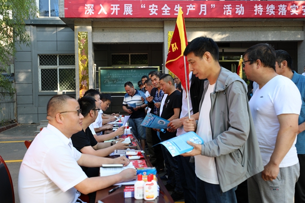 柴家溝井,相關(guān)部門負(fù)責(zé)人“化身”安全宣傳員,為職工發(fā)放安全宣傳單,現(xiàn)場囑咐安全、解答問題?;顒蝇F(xiàn)場共發(fā)放安全宣傳資料600余份,安全咨詢百余人次。(張大磊)