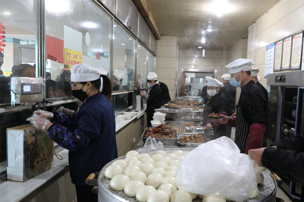 食堂大師傅說:“炊事班辛苦一點(diǎn)不要緊,天冷了,要讓職工吃上熱乎乎的可口飯菜”。