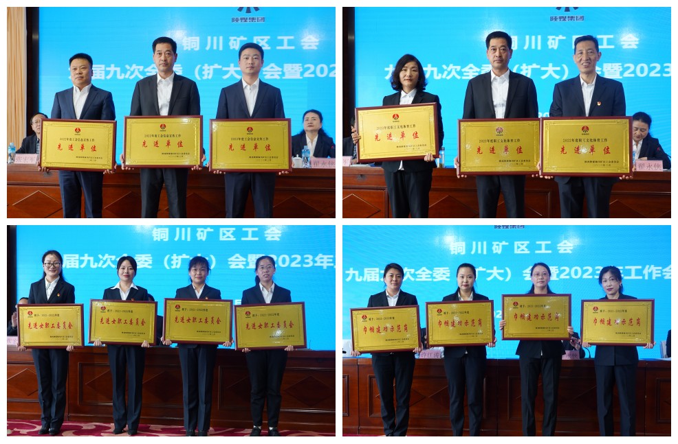 會議對2021-2022年度工會各項工作中涌現(xiàn)的先進(jìn)女職委、巾幗建功示范崗、巾幗能手、五好文明家庭和30名工會工作先進(jìn)個人進(jìn)行了表彰。授予陳家山煤礦、下石節(jié)煤礦、玉華井等3個單位為2022年度“工會信息宣傳工作先進(jìn)單位”,柴家溝井、直屬單位工會、下石節(jié)煤礦等3家單位為2022年度“職工文化體育工作先進(jìn)單位”。對優(yōu)秀女工委、巾幗示范崗、工會信息宣傳和文體工作等先進(jìn)集體進(jìn)行了現(xiàn)場頒獎。