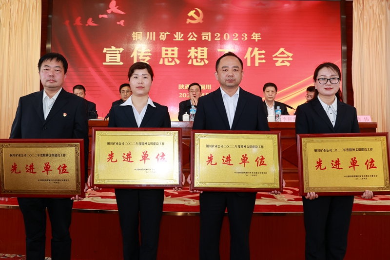 會議對2022年宣傳思想工作先進集體,新聞宣傳工作先進單位,精神文明建設(shè)工作先進單位,公司道德模范、先進個人、優(yōu)秀通訊員以及“銅煤好新聞”作者進行了表彰。授予玉華礦、下石節(jié)礦、陳家山礦、供應(yīng)分公司、華遠項目部、公司黨委宣傳部2022年度宣傳思想工作先進集體。授予陳家山礦、柴家溝井、東區(qū)礦井管理中心、鐵運分公司、機電分公司新聞宣傳工作先進單位。授予柴家溝井、玉華礦、下石節(jié)礦、欣榮配售電公司2022年度精神文明建設(shè)工作先進單位。授予柴家溝井李滿平敬業(yè)奉獻道德模范、玉華礦陳世飛助人為樂道德模范、鐵運分公司杜栓龍見義勇為道德模范、欣塑公司王瑞誠實守信道德模范、下石節(jié)礦曹運峰孝老愛親道德防范、柴家溝井薛佳奇自強自立道德模范,并現(xiàn)場進行了頒獎。