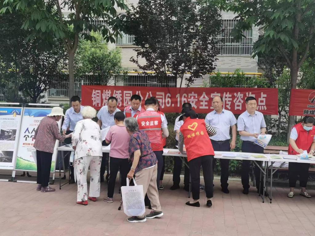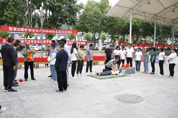 在機關(guān)院外活動現(xiàn)場,公司組織安監(jiān)部、安培中心、救護(hù)大隊、鐵運分公司、物資供應(yīng)分公司、機電分公司、欣榮配售電公司、欣塑公司等單位集中開展安全生產(chǎn)知識宣傳。