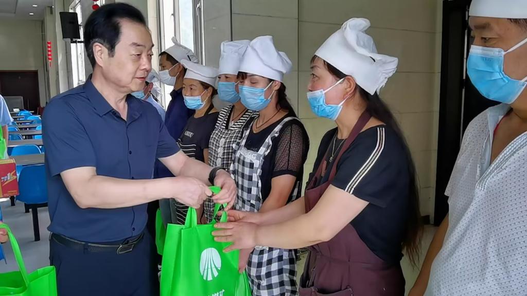 隨后,劉水利深入該礦職工食堂看望慰問了炊事班的職工。他說:“同志們,大家辛苦了!烈日炎炎,廚房是做好防暑降溫的關(guān)鍵區(qū)域,飲食安全也是關(guān)系職工群眾健康的大事”。在詢問大家的工作情況后,劉水利為炊事班同志積極服務(wù)職工生產(chǎn)生活的辛勤工作表示衷心的感謝,并叮囑大家在切實做好個人防暑降溫工作的基礎(chǔ)上,把牢高溫天氣下的飲食安全關(guān)口,以精心烹制、真情服務(wù),抓好舌尖上的安全工作,讓職工吃的舒心、吃得放心,努力以飽滿的工作熱情投身礦井發(fā)展各項工作。