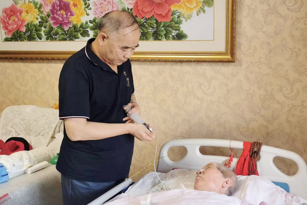 王樂(lè)新說(shuō),剛開(kāi)始照顧妻子沒(méi)有經(jīng)驗(yàn),一天從白忙到黑,還累得不行。慢慢地就有了體會(huì),時(shí)間就安排的比較合理,幾點(diǎn)幾分該干啥都有了計(jì)劃,每天按著計(jì)劃走,既不耽擱照顧病人,自己也能抽空休息一下。每天的4次按摩活血一次都不能少,每次要按摩一個(gè)半小時(shí)左右,做完這些流程他都會(huì)出一身汗。