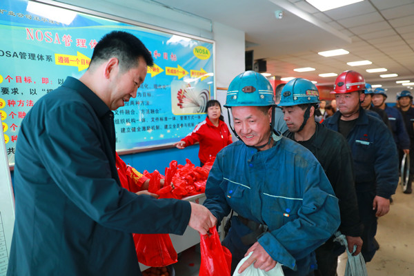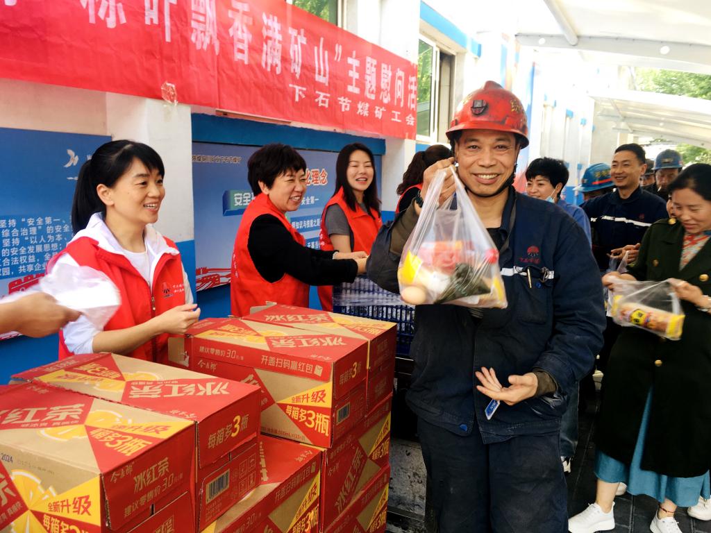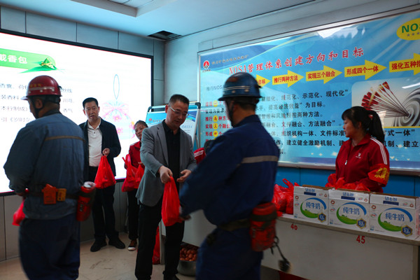 下石節(jié)礦工會(huì)組織開展了“我們的節(jié)日·端午送溫暖囑安全”活動(dòng),女工家屬協(xié)管員將香甜的粽子、雞蛋、面包和飲料等送到職工手中,同時(shí)送上節(jié)日的祝福,叮囑他們?yōu)榱说V井安全發(fā)展和家庭幸福美滿,牢記安全,杜絕違章,高高興興上班,平平安安回家。