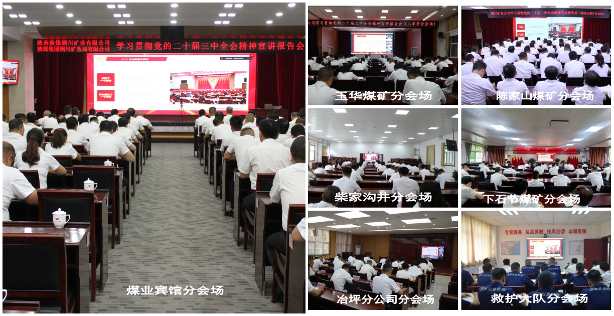 宣講會(huì)由公司黨委副書(shū)記、董事、總經(jīng)理雷鐵山主持。本次宣講,采取現(xiàn)場(chǎng)會(huì)與視頻會(huì)相結(jié)合的方式進(jìn)行,共設(shè)1個(gè)主會(huì)場(chǎng)、7個(gè)分會(huì)場(chǎng)。公司領(lǐng)導(dǎo)班子成員,各副總師、機(jī)關(guān)各部室負(fù)責(zé)人、生產(chǎn)輔助單位主要負(fù)責(zé)人在主會(huì)場(chǎng)參會(huì);4對(duì)生產(chǎn)礦井,冶坪分公司、救護(hù)大隊(duì)、生產(chǎn)輔助單位領(lǐng)導(dǎo)班子成員及科部長(zhǎng)、區(qū)隊(duì)長(zhǎng)、黨員代表在各分會(huì)場(chǎng)參會(huì),共有各條戰(zhàn)線的450多名黨員干部聆聽(tīng)了宣講。