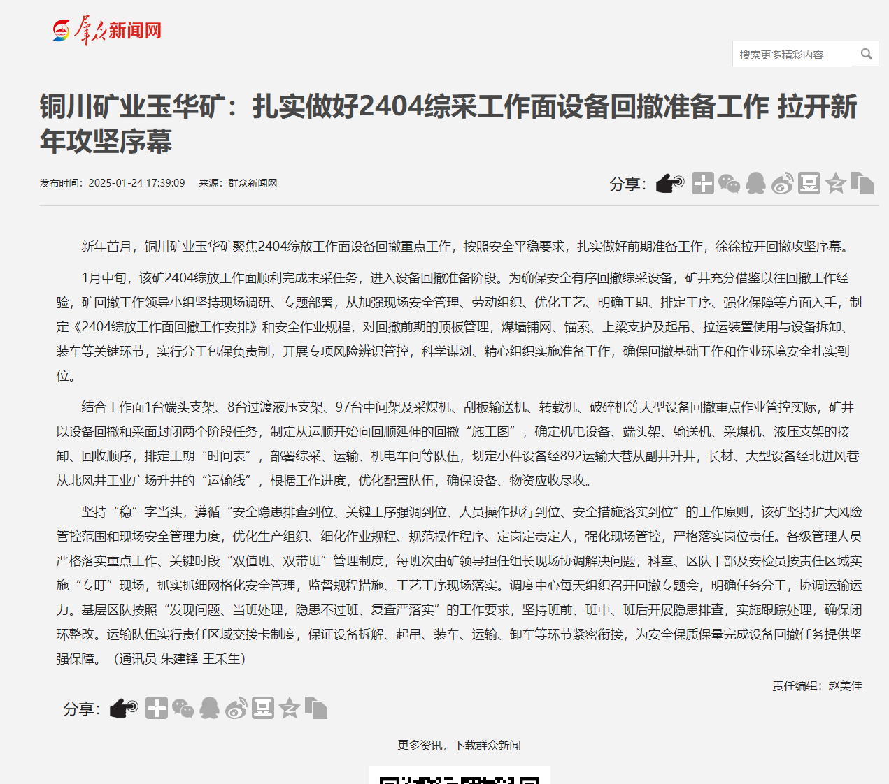 上一條:中國煤炭工業(yè)雜志| 陳家山煤礦:強化安全“思維” 護航安全發(fā)展 下一條:群眾新聞網(wǎng)| 玉華礦:智能“管家”帶來智慧工作新主張