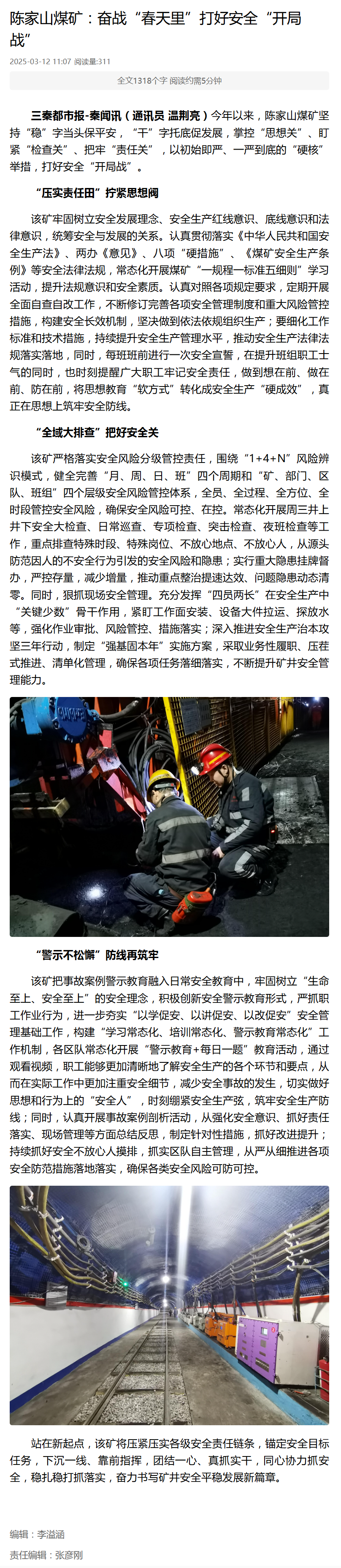 三秦網(wǎng)| 陳家山煤礦:奮戰(zhàn)“春天里”打好安全“開局戰(zhàn)”