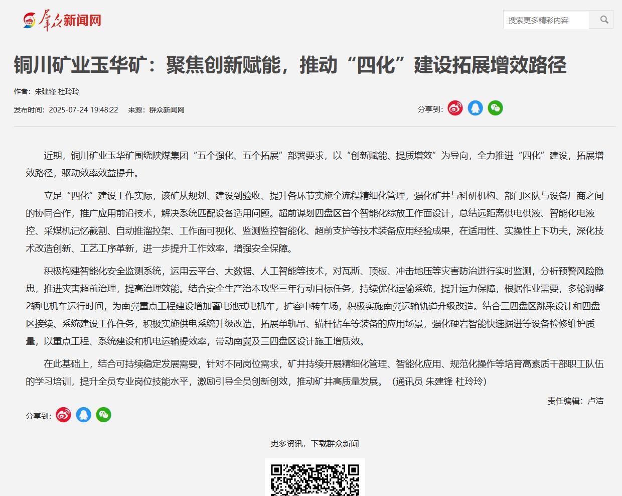 群眾新聞網(wǎng)| 玉華礦:聚焦創(chuàng)新賦能,推動(dòng)“四化”建設(shè)拓展增效路徑