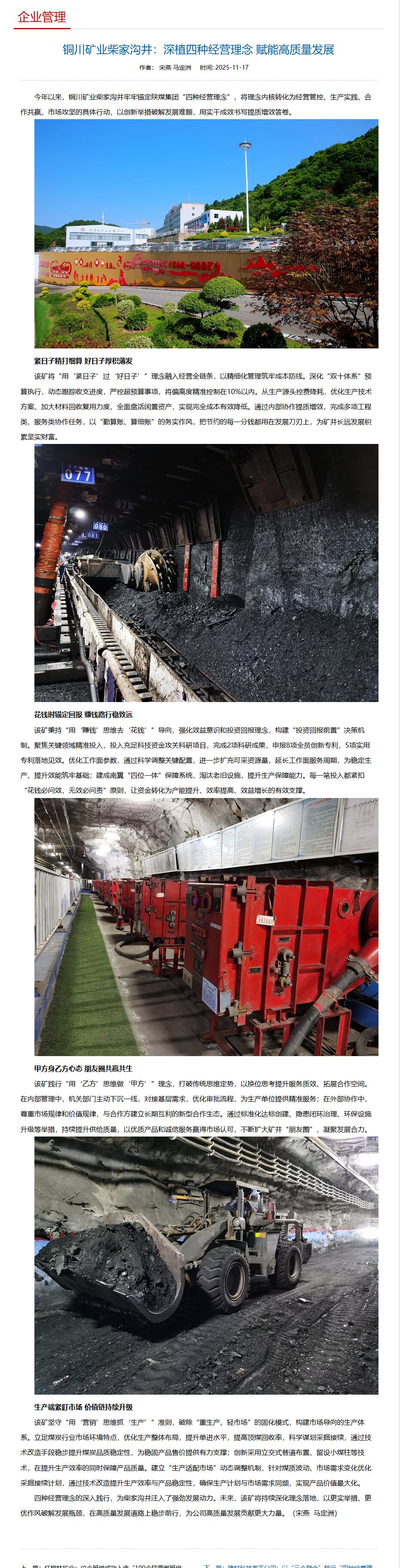 集團(tuán)網(wǎng)| 銅川礦業(yè)柴家溝井:深植四種經(jīng)營(yíng)理念 賦能高質(zhì)量發(fā)展