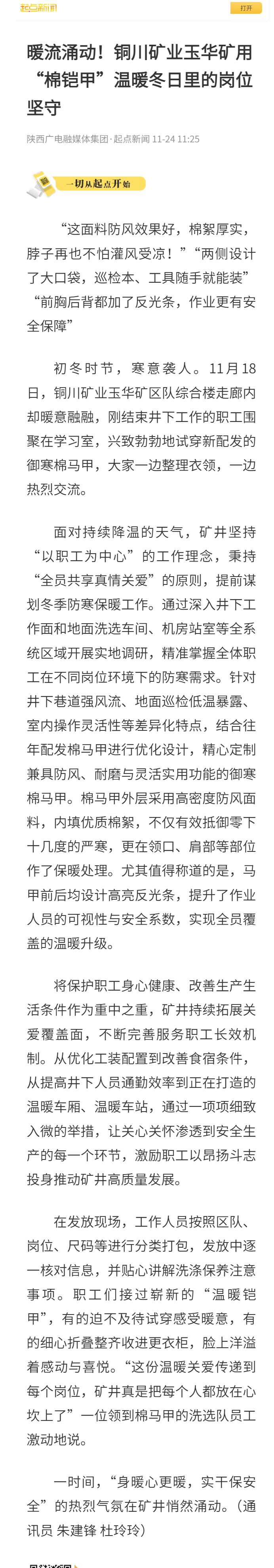 起點(diǎn)新聞| 暖流涌動(dòng)!玉華礦用“棉鎧甲”溫暖冬日里的崗位堅(jiān)守