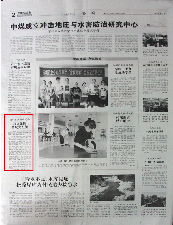 銅川礦業(yè)公司黨委獲評先進基層黨組織