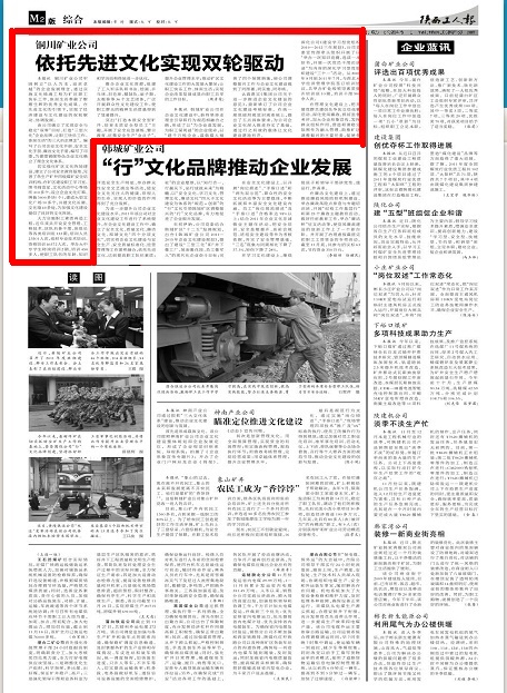 本報訊銅川礦業(yè)公司牢固樹立“以人為本、追求卓越”的企業(yè)發(fā)展理念,通過實施文化鑄魂工程為礦區(qū)職工快樂工作、體面生活奉獻了熠熠生輝的優(yōu)秀文化成果。在先進文化的引領下,實現(xiàn)了經(jīng)濟建設與文化建設的雙輪驅動、協(xié)調發(fā)展。