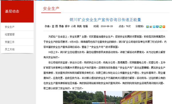 該公司組織安監(jiān)部、鐵運(yùn)分公司、物資供應(yīng)分公司、機(jī)電分公司、奧博集團(tuán)、欣榮配售電公司、欣塑公司、玉華礦柴家溝井等單位分別集中開展安全生產(chǎn)知識(shí)宣傳。咨詢現(xiàn)場(chǎng)采取懸掛“安全生產(chǎn)月”活動(dòng)主題橫幅、展出安全生產(chǎn)宣傳牌板、發(fā)放宣傳資料和現(xiàn)場(chǎng)解答等多種形式,向職工群眾和社會(huì)公眾傳播安全生產(chǎn)理念、安全科普常識(shí)、職業(yè)健康知識(shí)、應(yīng)急處置、自救互救方法,并對(duì)群眾提出的安全生產(chǎn)方面的有關(guān)問(wèn)題進(jìn)行解答?;顒?dòng)現(xiàn)場(chǎng),過(guò)往的群眾有的在安全生產(chǎn)宣傳牌板前駐足觀看,有的到咨詢站前領(lǐng)取安全知識(shí)宣傳資料,有的則向現(xiàn)場(chǎng)安全咨詢員詢問(wèn)相關(guān)問(wèn)題,職工群眾收獲了安全知識(shí),長(zhǎng)了見(jiàn)識(shí)。