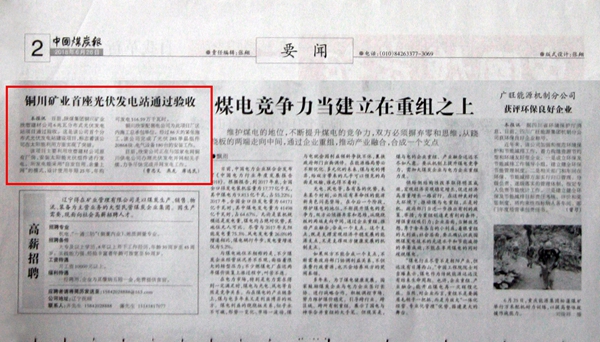 銅川礦業(yè)首座光伏發(fā)電站通過驗收