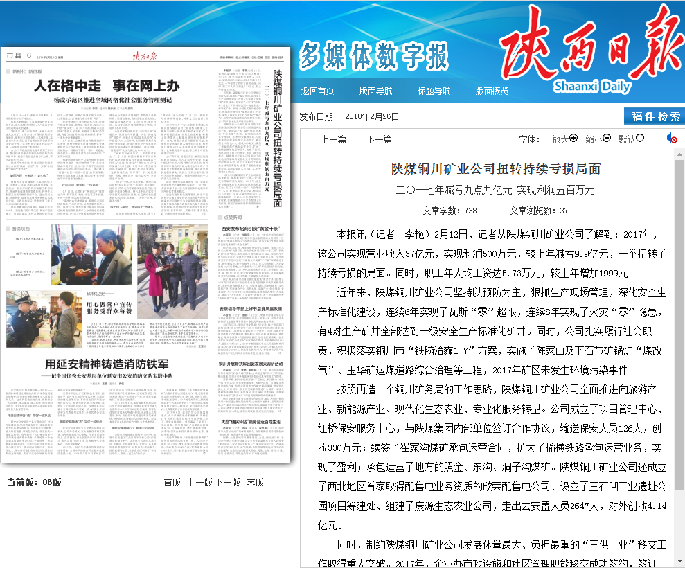 陜煤銅川礦業(yè)公司扭轉(zhuǎn)持續(xù)虧損局面