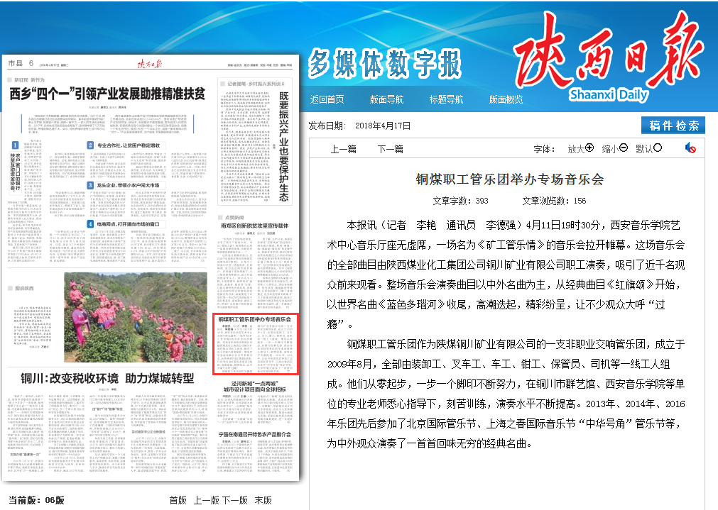 銅煤職工管樂團作為陜煤銅川礦業(yè)有限公司的一支非職業(yè)交響管樂團,成立于2009年8月,全部由裝卸工、叉車工、車工、鉗工、保管員、司機等一線工人組成。他們從零起步,一步一個腳印不斷努力,在銅川市群藝館、西安音樂學(xué)院等單位的專業(yè)老師悉心指導(dǎo)下,刻苦訓(xùn)練,演奏水平不斷提高。2013年、2014年、2016年樂團先后參加了北京國際管樂節(jié)、上海之春國際音樂節(jié)“中華號角”管樂節(jié)等,為中外觀眾演奏了一首首回味無窮的經(jīng)典名曲。