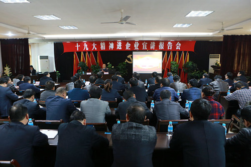 宣講結束后,劉啟科對李永剛的精彩宣講表示感謝,并就公司進一步抓好十九大精神的學習貫徹提出要求。他強調(diào),公司各級黨組織和廣大黨員干部要進一步認真學習、深刻領會、深入思考宣講報告內(nèi)容,切實把學習宣傳貫徹黨的十九大精神作為當前和今后一個時期的首要政治任務,進一步按照陜煤集團的部署和公司的安排,對深入抓好學習宣傳貫徹黨的十九大精神工作高度重視、精心組織,扎實推進,要充分利用多種形式深入學習領會黨的十九大精神,推動黨的十九大精神入腦入心、落地生根;黨政主要領導要堅持帶頭學、帶頭講、帶頭干,以身作則,率先垂范,深入宣講,營造學習宣傳貫徹落實十九大精神的強大聲勢和濃厚氛圍;要不斷創(chuàng)新形式,多點發(fā)力,深入宣傳解讀好黨的十九大精神,做到全員參與、全面覆蓋、持續(xù)推進,在全公司掀起學習宣傳貫徹十九大精神新熱潮;要堅持學以致用、學用結合,將學習貫徹十九大精神與推動企業(yè)中心工作緊密結合,切實將十九大精神轉(zhuǎn)化為干事創(chuàng)業(yè)的奮斗激情和實際行動,把黨的十九大精神落實到推進企業(yè)改革發(fā)展的各個方面,體現(xiàn)到做好今年各項工作和安排部署好明年工作任務之中,努力在十九大精神指引下不斷開創(chuàng)公司各項工作發(fā)展新局面。