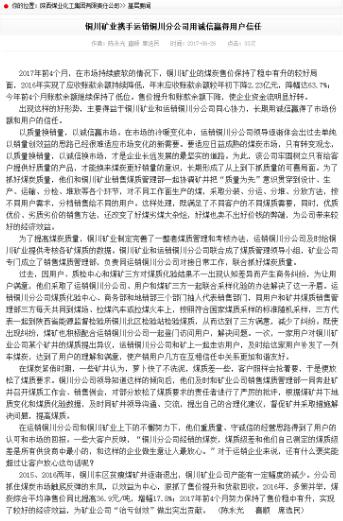 出現(xiàn)這樣的好形勢,主要得益于銅川礦業(yè)和運(yùn)銷銅川分公司同心協(xié)力,長期用誠信贏得了市場份額和用戶的信任。