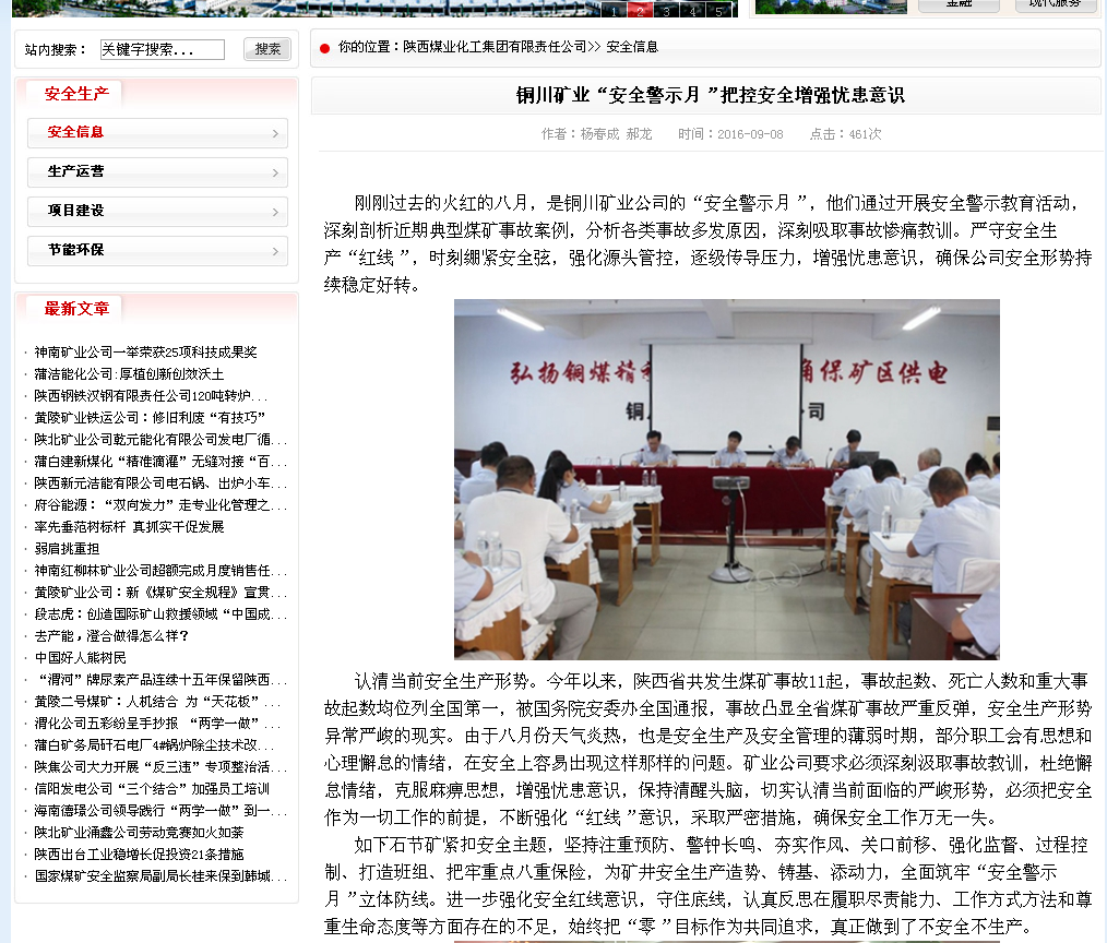 陜煤化集團(tuán)網(wǎng)站 2016年9月8日 安全生產(chǎn)板塊