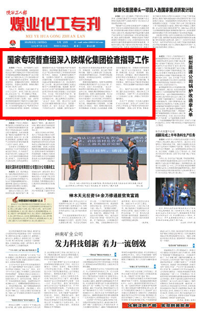 7月6日,由中國(guó)煤炭工業(yè)協(xié)會(huì)副會(huì)長(zhǎng)、總經(jīng)濟(jì)師姜智敏,國(guó)家發(fā)改委經(jīng)濟(jì)運(yùn)行調(diào)節(jié)局副處長(zhǎng)葉平等組成的國(guó)家專項(xiàng)督查組到陜煤化集團(tuán)銅川礦業(yè)公司調(diào)研煤礦去產(chǎn)能和276天工作日制度落實(shí)情況。國(guó)家能源局西北監(jiān)管局、省發(fā)改委、省煤炭局、省煤監(jiān)局有關(guān)領(lǐng)導(dǎo),陜煤化集團(tuán)董事長(zhǎng)、黨委書記楊照乾,陜煤化集團(tuán)有關(guān)部門負(fù)責(zé)人陪同。