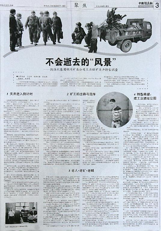 ★ 8月3日“中國(guó)煤炭報(bào)”刊發(fā)《不會(huì)逝去的“風(fēng)景”--陜煤化集團(tuán)銅川礦業(yè)公司王石凹礦關(guān)井轉(zhuǎn)型調(diào)查》(作者:丁藝涵 張兆增 孫楓凱 白軍戰(zhàn))