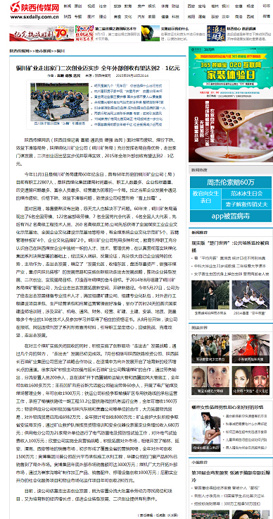 陜西傳媒網(wǎng):銅川礦業(yè)走出家門二次創(chuàng)業(yè)邁實(shí)步 全年外部創(chuàng)收有望達(dá)到2﹒1億元