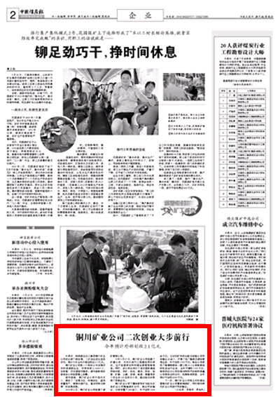 中國煤炭報:銅川礦業(yè)公司二次創(chuàng)業(yè)大步前行