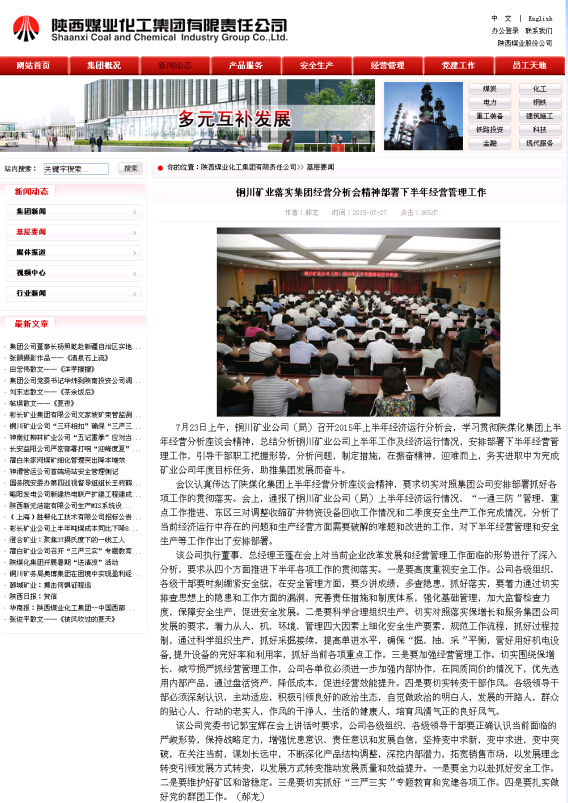 ★7月22日“陜煤化集團(tuán)網(wǎng)站”基層要聞刊發(fā)《銅川礦業(yè)落實(shí)集團(tuán)經(jīng)營(yíng)分析會(huì)精神部署下半年經(jīng)營(yíng)管理工作》(作者:郝龍)