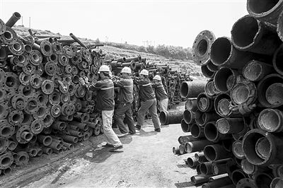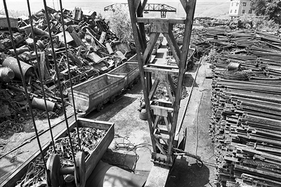 | 回收的井下水管堆積如山,因井下的水管很長,一般在井下先解體后再運到井上。這樣的水管不能再利用,只是一堆廢鐵。