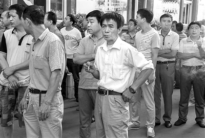 | 將要去玉華礦工作的工人聽從負責人的安排。