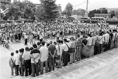 陜煤化集團銅川礦業(yè)公司王石凹礦職工文化活動中心前的廣場上,站滿了職工和他們的親人。不知是盛夏烈日的烤灼還是即將分別難以言狀的復雜心情,大家的神情都透露著一絲焦慮、無奈,眼睛也都紅紅的。