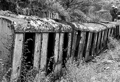 | 井下運送工人的人車被風吹雨淋已是漆片爆裂,銹跡斑斑。