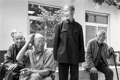 | 江群亮(左二)81歲,祖籍安徽,退休前是采煤二區(qū)工人,現在每月退休金3000元。