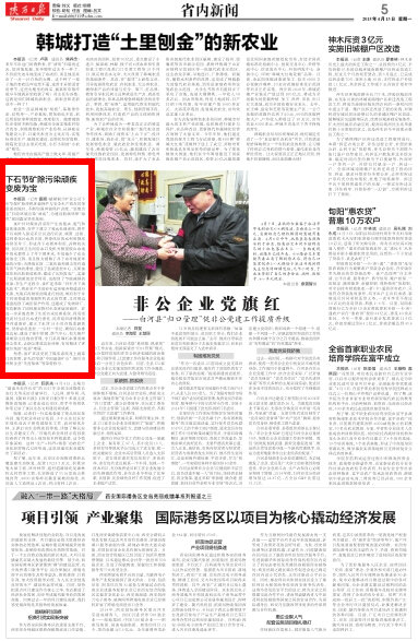 陜西日?qǐng)?bào):下石節(jié)礦除污染頑疾變廢為寶