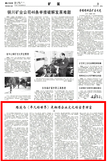 銅川日?qǐng)?bào):路遙與《平凡的世界》是銅煤企業(yè)文化的寶貴財(cái)富